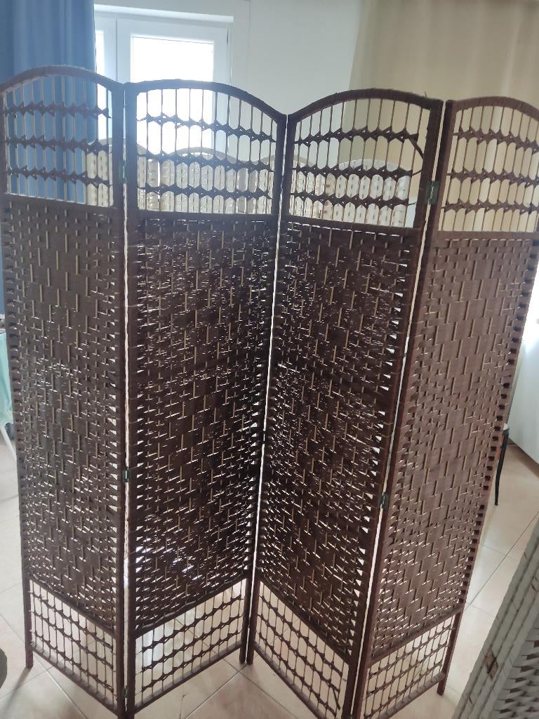 HierTetuanVerviers - ParaventParavent habitat en bois de pauwlonia. H 170 x 178 de large (4 x 44,5 cm) il y a éventuellement une table de nuit ou table basse assortie (50 euro).Utilisé Enlèvement