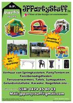 Partytent en/of springkasteel te huur verschillende afmetingen 4x8 , 4x10, 5x10 van de tenten en ook koppelbaar ook nog andere feestartikels in verhuur zoals tafels , stoelen, partytafels, verwarming, beamer, nagelblok,sumopakken enz voor meer info e...