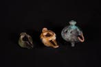 Avant-hierY.E.Antwerpen - Seljuk geglazuurde terracotta set van 3 olielampen, 10–14 cmCirca 1100–1200 na chr.the seljuks, seljuks, seljuks, of seljuks waren een turkse oghuz-dynastie die regeerde in het huidige iran en irak, evenals in anatolië tussen het midden van de 11e eeuw en het