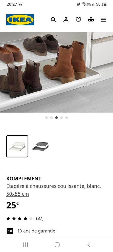 - Komplement paxétagère à chaussures blanche en métal sans rails pour armoire pax 50x60 à venir la chercher sur place à1500 halleComme neuf Enlèvement