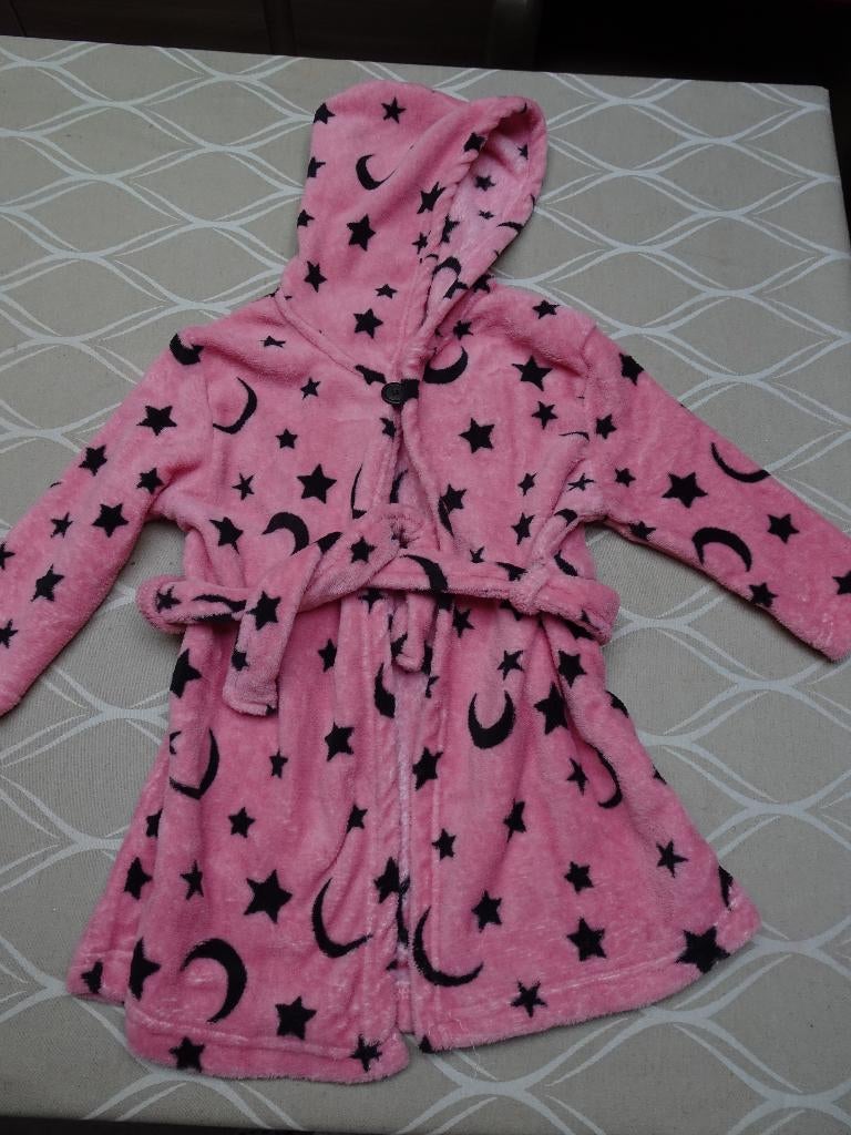 - Peignoir rose - Enfants - 104-110Peignoir rose avec étoiles et lunes noires kids - 104-110 avec bouton dans le cou avec sweat à capuche avec ruban pour la taille pick up in laeken - bockstaelComme neuf Enlèvement ou Envoi