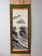 - Peinture de paysage à l’encre remarquable - Soie - Shh -Shh, œuvre signée sur rouleau suspendu du japon de l’époque shwa, en pinceau encre chinoise sur soie, intitulée remarkable ink landscape painting, dimensions totales 177 × 51 cm (peinture 101,5 × 37,5