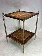 Avant-hierCatawikiToute la Belgique - Table dappoint - Bois, Laiton - Étagère et petite table.Une petite table d'appoint étagère française du xxe siècle avec plateau en bois sur les deux niveaux et cadre en laiton, en bon état avec de petites traces d'âge et des taches, dimensions haut