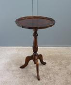 - Table dappoint - Petit table à vin vintage - AcajouTable d’appoint vintage en acajou, avec colonne centrale tourné et trois pieds cabriolets, finition chaude rouge-brun, dimensions 52 cm de haut sur 35,5 cm de large et 35,5 cm de profondeur, poids env