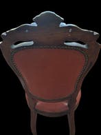 Aujourd'huiPub au topCatawikiToute la Belgique - Chaise (6) - Bois, Cuir, LaitonSix chaises au style luigi filippo en noyer massif avec des détails sculptés, assise et dossier en cuir cognac, clous en laiton et pieds avant en sabre, fabriquées en italie, en très bon état avec de