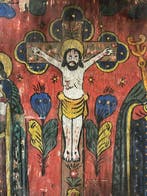 23 févr. 26Pub au topDe BestraterBeverlo - Icoon - Kruisiging met de Maagd en een heilige bisschop -Prachtige en zeldzame polychrome houten icoon afkomstig uit de ateliers van het heiligdom nicula, een van de oudste centra voor religieuze schilderkunst in roemenië.het klooster van nicula, opgericht