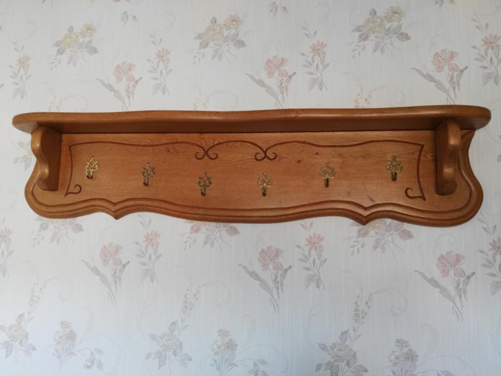 - Archelle en chêne massifSuperbe archelle décorative en chêne clair massif.avec planche supérieur. Sculpté en plein bois, 6 crochets. Longueur: 1m15 hauteur: 36 cm etat: impeccableEnlèvement ou Envoi