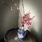 HierSjonnieSaint-Nicolas - Vaas - Porselein - Japan - Meiji periode (1868-1912) -Antieke meiji-periode arita porseleinen vierkante flesvaas (kakubin) in blauw-witte imari met een volledige kaart van japan op alle vier vlakken, hoogte 21 cm, breedte 8,3 cm, gewicht 715 g, in goede