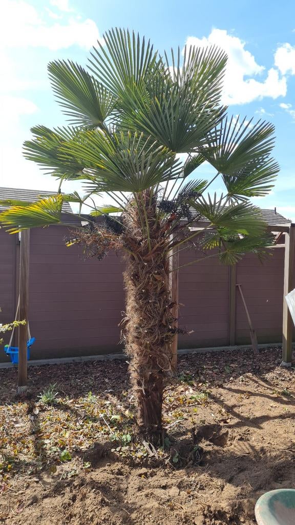 31 mars 26Martinus KooistraVottem - Palmier 2,4M Trachicarpus FortuneiGrand palmier trachicarpus fortunei de 240 cm de hauteur totale, hauteur du tronc 160 cm. Un palmier femelle en bonne santé sur lequel poussent des graines. Il existe également un deuxième grand palmiEnlèvement