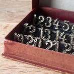 Aujourd'huiPub au topCatawikiToute la Belgique - Accessoire pour le vin (25) - numéros d’attache - Plaqué(e)Anciens marqueurs de verre allemands datant de 1940–1950, en métal blanc plaqué argent, ensemble complet de 24 chiffres et emballage d'origine.