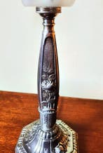 - Darlog / Degue - Lampe - Darlog - Plaqué(e) argent, fonderieLampe de table art nouveau, plaquée argent avec fonte en zinc, modèle darlog par darlog / degue, frankreich, datée vers 1900–1910, 12 cm de large, 12 cm de profondeur et 35 cm de haut, en bon état d’u