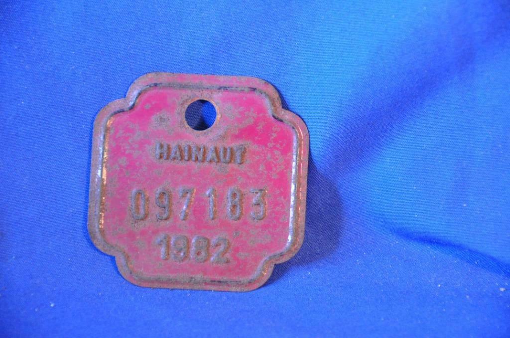 - § plaque de velo hainaut 1979 (1)Ancienne plaque pour velo hainaut 1979 dimensions 8 x 6,5 cm trace d'usage visible sur la photo ref 248Enlèvement ou Envoi