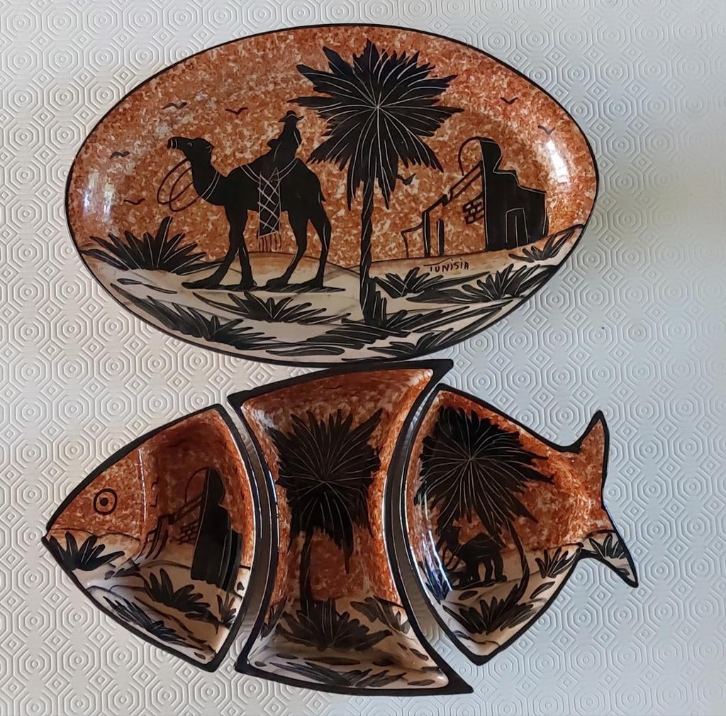 - Plateau apéritif en céramiquePlateau apéritif avec 3 bols en forme de poisson. En parfait état. Enlèvement à zellik envoi via bpost ou mondial relayEnlèvement ou Envoi