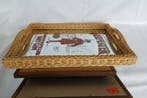 Avant-hierCatawikiToute la Belgique - Plateau vintageMagnifique plateau vintage avec fond en bois et bord en osier tressé. Idéal pour servir des boissons ou comme objet de décoration à la maison. Le plateau est en bon état avec de légères traces d'uUtilisé Enlèvement