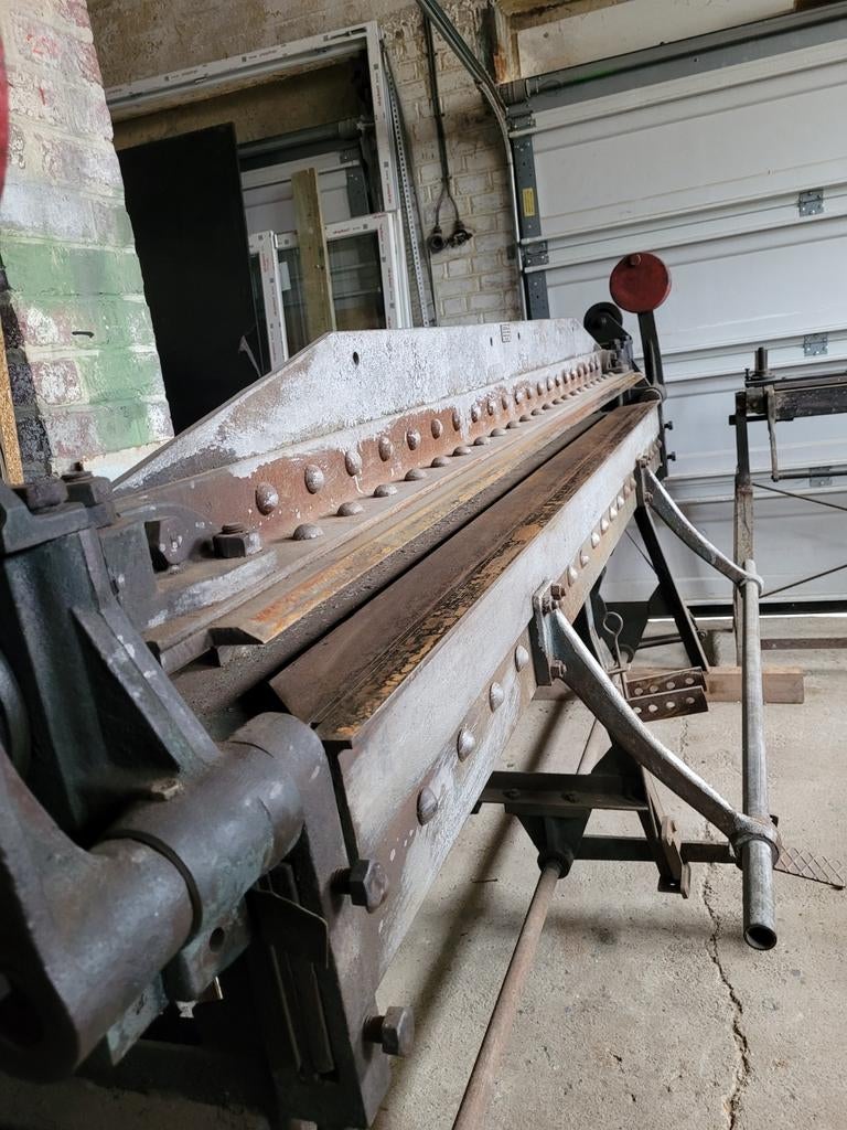 HierfernandoAuvelais - Plieuse 1mAncienne plieuse robuste et lourde, capacité 1m de large. Graissée et huilée elle fonctionne parfaitement, juste une petite marque au bord droit de la lame. A boulonner sur une table établi ou construUtilisé Enlèvement