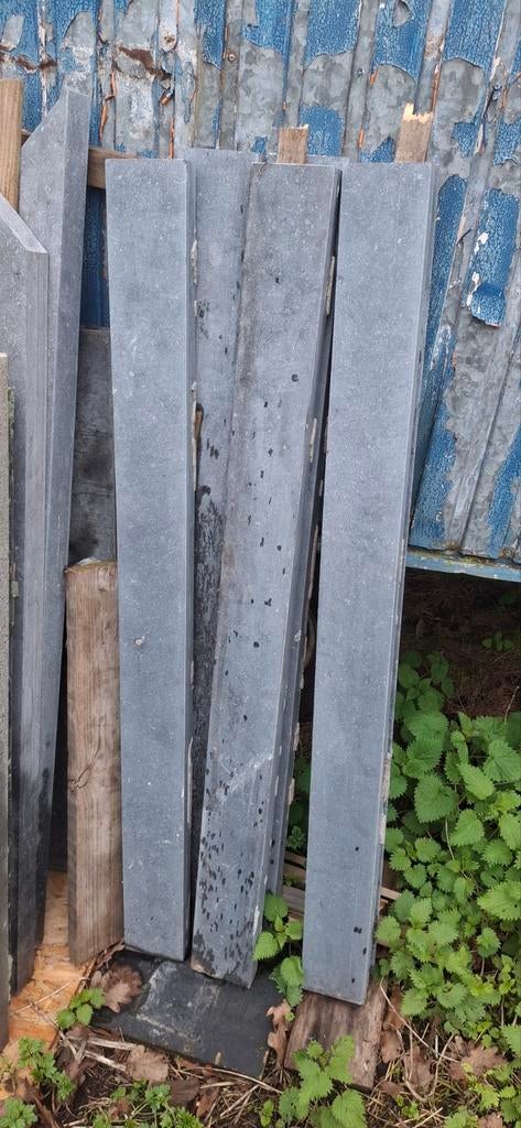 HierVNieuwpoort+Deel Westende - TABLETTES EN PIERRE BLEUE - YARREST6 nouvelles tablettes de 100 x 20 x 2 cm d'épaisseur à 18€ chacune ou 90€ pour les 6 pièces 6 plinthes de 600 x 80 x 12 mm 5€ pour les 6 pièces 1 ardoise 1050 x 190 x 45 mm collectéNeuf Enlèvement