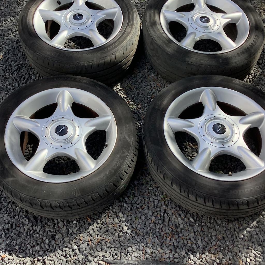 - Jantes Mini Cooper R50Jeu de 4 jantes origine mini cooper r50 4 trous. Très bon état voir photos.. 2 Pneus ok, 2 pneus à remplacerEnlèvement