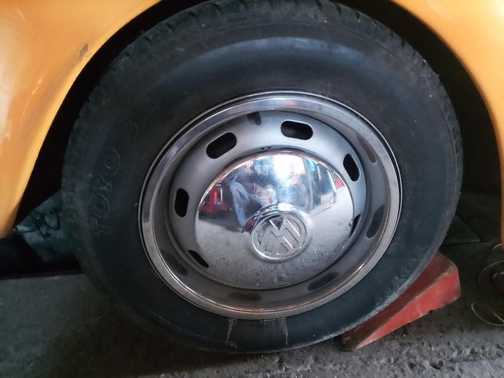 25 janv. 26oliveTournai - Roue VW Cox Kever + enjoliveur1 roue 5 trous pour vw cox, coccinelle, kever jusque 1967 avec enjoliveur dans son jus. Jante 4 x 15. Dans son jus avec un pneu d’époque. Le pneu est trop vieux pour être utilisé sur la route mais peuEnlèvement