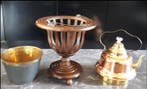 - Bouilloire - Bois, Cuivre - poêle à bois+ bouilloirePoêle en bois datant des années 1930–1940, avec intérieur en cuivre et bouilloire en cuivre à poignée en porcelaine sur trois pattes rondes, dimensions 70 cm de hauteur, 38 cm de largeur et 38 cm de p