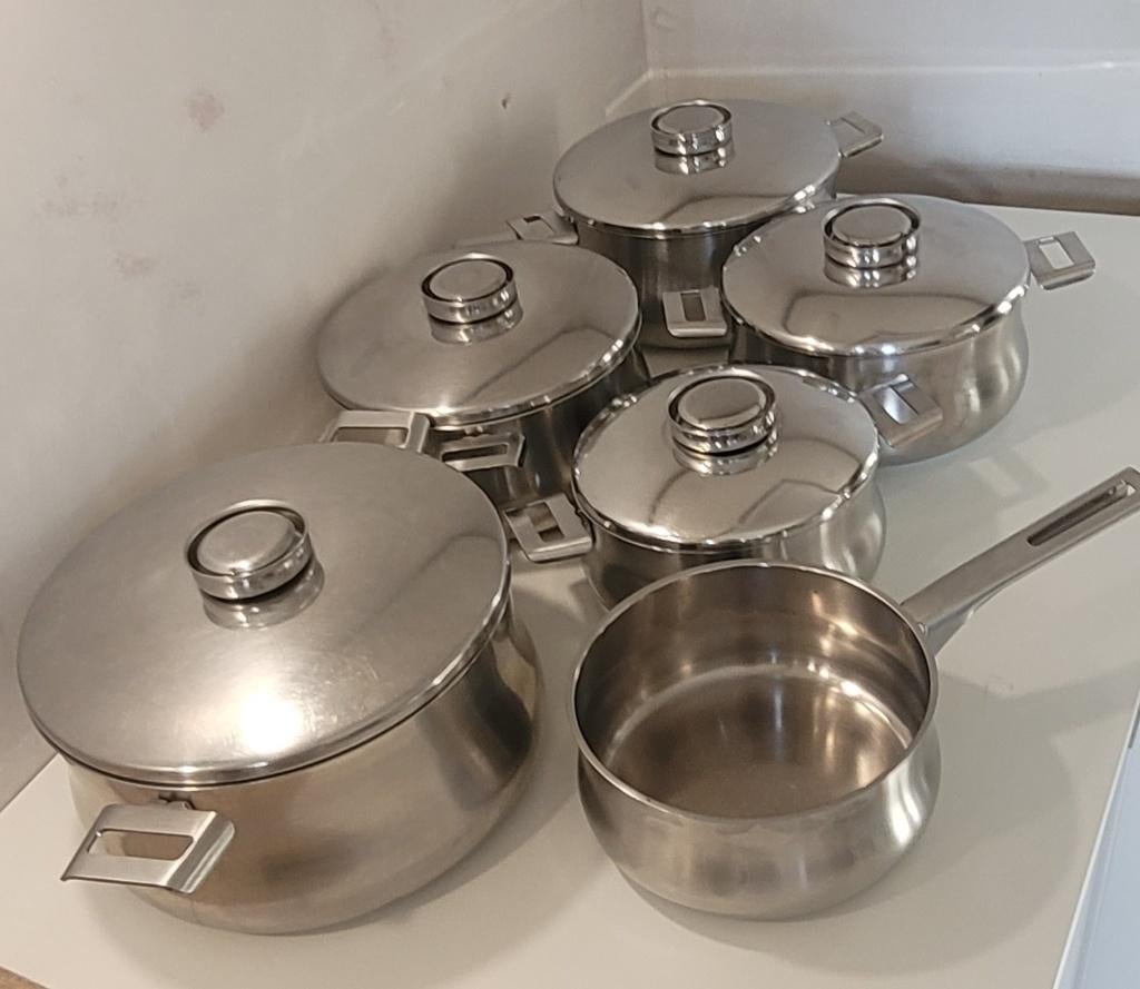 10 févr. 26WillyMerksplas + Deel Rijkevorsel - pots de la série Demeyere SilvinoxDemeyere serie silvinox 1. Poêle ø 23 cm 9" 2. Casserole ø 19 cm h.9 Cm - ø7,5" h 3,5" 3. Casserole + couvercle ø 19 cm h.9 Cm - ø7,5" h 3,5" 4. Casserole + couvercle ø 21 cmUtilisé Enlèvement ou Envoi