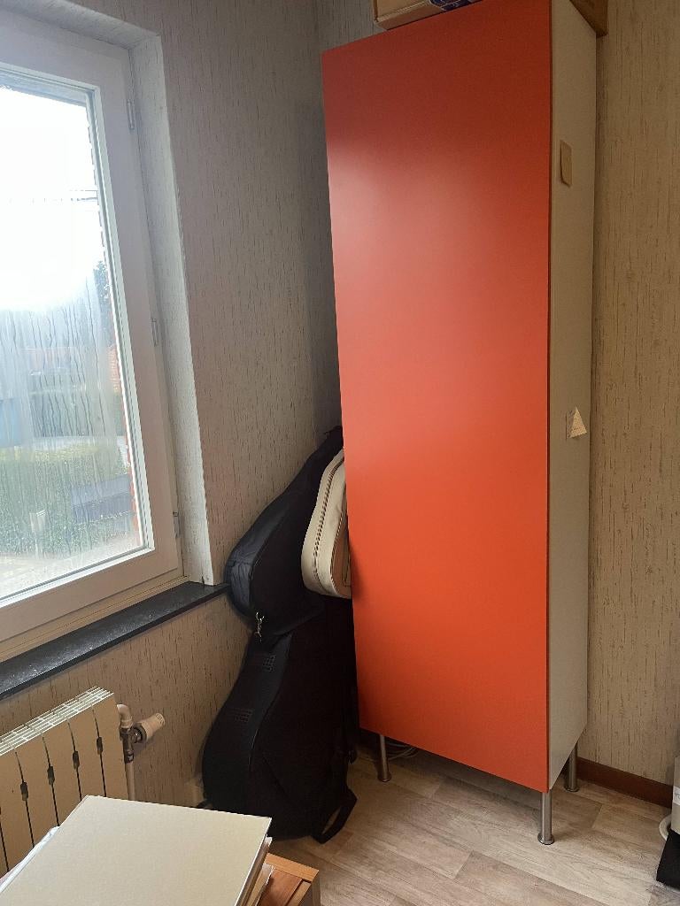 Aujourd'huinatalie prWilrijk - Armoire avec pieds IKEA orange 220x60x35cm bon étatArmoire avec pieds ikea orange 220x60x35cm + poignées neuves (modèle spann ikea) à installer 4étagères installées +2 fournies - bon étatUtilisé Enlèvement