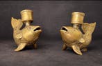 Hoeleden + Deel Bunsbeek & Sint-Magriete-HoutemAvant-hier - Chandelier (2) - Laiton doréPaire de bougeoirs en laiton doré en forme de poissons koi, originaires d’angleterre, datant de 1940–1950, avec un design stylisé.