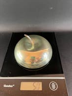 Avant-hierNata TutejaTrazegnies - Magnifique plat en verre avec pomme en verre - NOUVEAUNouveau ! Plat en verre dans les tons bleu-vert avec des accents de couleur + pomme en verre bleue avec poignée noire le dessus du plat présente un certain relief et les boules de verre jaunes et rougEnlèvement ou Envoi