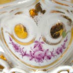 - Porcelaine de Paris - Vaas - PorseleinEen 19e-eeuwse porcelaine de paris decoratieve vaas uit frankrijk, van wit porselein met een vergulde gegolfde rand, rijk reliëf met kettingmotief en een roze bloemenmedaillon, afmetingen 24 cm breed,