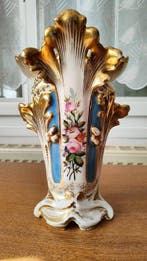 22 janv. 26claireSint-Kruis - Porcelaine de Paris - Vase - PorcelaineVase décorative en porcelaine de paris du xixe siècle, fabriquée en france, porcelaine blanche avec bord scallop doré et médaillon floral central, dimensions 24 cm de largeur, 16,8 cm de hauteur et 10