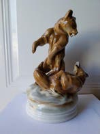 - Zsolnay - Beeldje - PorseleinPorseleinen standbeeld van bela markup met twee apen die spelen, vervaardigd door de hongaarse zsolnayfabriek in pécs, daterend uit 1930–1940, in bijna nieuwe staat en met afmetingen 27 cm hoog, 18 cm