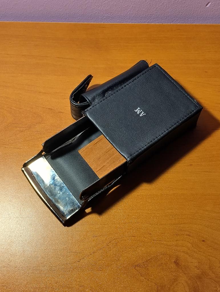 11 oct. 21Curiosa en Kunst WebshopValkenburg aan de Geul, NL - ancienne boîte à cigares vintage sixties porte-cigarettesTrès belle ancienne boîte à cigares porte-cigarettes état neuf dimensions : 14,5 x 11 cm (extérieur) pochette en marron, brun foncé très bonne étatEnlèvement