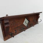 - Porte-manteau - Bois dur - Miroir en chêne et porte-manteauxMiroir mural encadré en bois dur de chêne, datant des années 1940–1950, motif art déco.