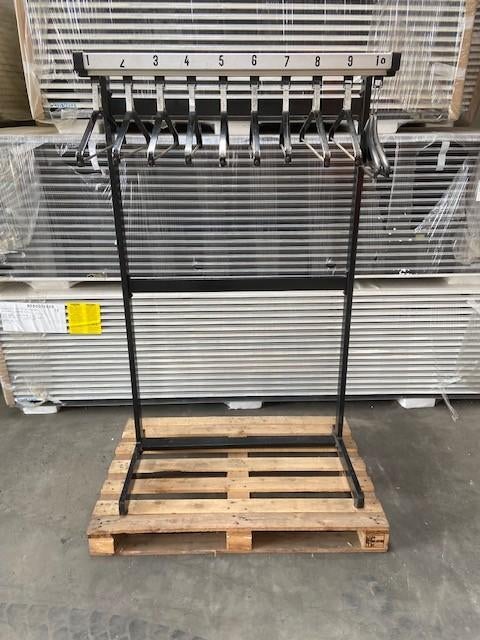 - PORTE-MANTEAU DE POMPIER 10 POSITIONSPorte-manteau autoportant pour 10 manteaux épais pesant jusqu'à 15 kg chacun, hauteur totale 1700 mm, pieds 520 de profondeur et largeur 1000 mm, avec pieds réglables. Info 0494 13 42 06Utilisé Enlèvement