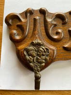 - Porte-manteau - Bois, LaitonPatère murale ancienne des années 1950–1960, en bois de chêne massif avec crochets en laiton, 29 cm de hauteur, 15 cm de largeur et 6 cm de profondeur, état excellent avec de minimes traces d’usure.