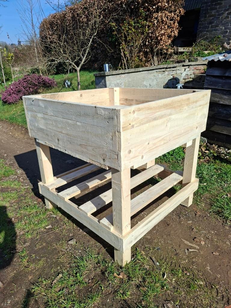 Aujourd'huiPiet DelaereRoeselare - potager sur pieds jardinièresPotager sur pieds neuf tres robuste pieds de 75mm planches de 24 mm vissé et poncé mesure 100x100 x 100 cm de hauteur au prix de 85 euros renfort au dessous trous d évacuation d eau autre mesure possiNeuf Enlèvement ou Envoi