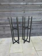 Avant-hierThomasIxelles - Table à plantes - Métal - Grand - 2 piècesDeux grandes socles métalliques noirs pour plantes originaires d'europe, chacun mesure 85 cm de haut, 45 cm de large et 48 cm de profondeur, en métal, période estimée 2026, en excellent état et sa