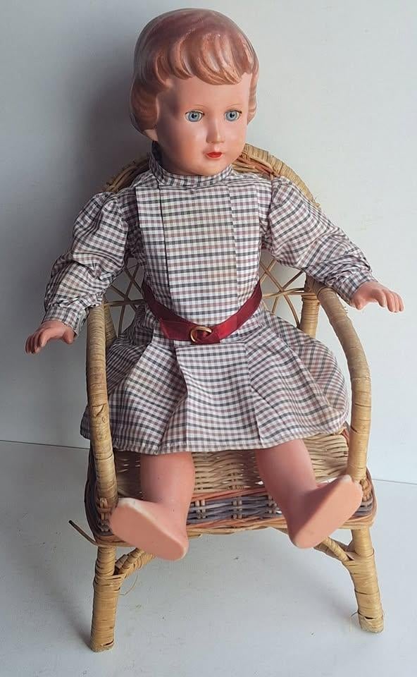 24 avr. 26Emma GilbertChievres - Poupée ancienne - vintageAncienne grande poupée schildkrot /turtel / tortue, n°56 – année 1956. Elle pleure quand on la retourneEnlèvement