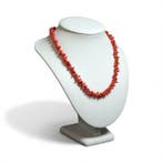 - Corail - Argent - Collieréchantillon : corail rouge naturel ; nom scientifique : corallium sp. ; Collier élégant d’italie en corail rouge naturel de la méditerranée, longueur d’environ 42 cm, poids total environ 10 g, fragmen