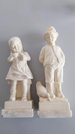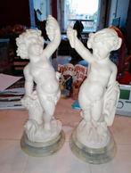 19 juil. 25dretieAvelgem& Deel Kluisbergen - 2 beeldjes van Prof. G. Bessi in albast en marmervoet2 mooie beeldjes (25 en 28cm) van giuseppe bessi (1857–1922), vaak aangeduid als prof. G. Bessi, was een italiaanse beeldhouwer bekend om zijn verfijnde bustes en figuren in albast en marmer. Zijn werEnlèvement