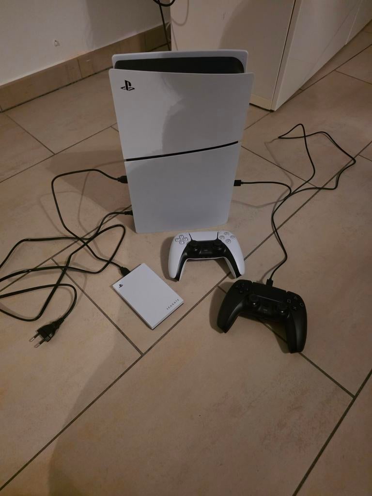 - Playstation 5 digitaalPlaystation 5 digitaal met 2 bakjes en harde schijf van 1t plus stuur en pedallen. Weg wegens niet meer te spelen. Aangekocht op 12/11/2025 nieuw prijzen. Playstation €575,00 harde schijf €1Comme neuf Enlèvement