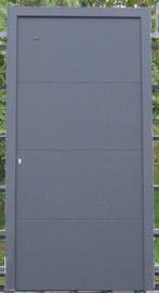 - pvc buitendeur , voordeur , deur 110 x 215 zwartgrijsPvc vleugel overdekkende voordeur (schuco) met geïsoleerd sierpaneel van frager fralu. De totale breedte met kader is 1,10m en is 2,15m hoog. De opening op zich is 94cm. Draait open naar rechts binnenOphalen of Verzenden