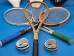 2 sept. 25OlivierMons - Raquette de tennisUn ensemble de trois raquettes de tennis vintages avec accessoires, comprenant head arthur ashe boron (made in austria), donnay allwood björn borg (made in belgium) et raquette araya en aluminium avec