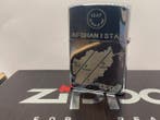 19 mars 26FlamestryAntwerpen - Zippo - RARE - COFFRET ZIPPO avec ZIPPO ARMY - AFGHANISTAN -Zeldzame zippo cadeauverpakking met zippo army - afghanistan aansteker en leren etui, plus een rokersmondstuk en reservestenen; editie 2009, vijf stuks, serienummer a 09 - januari 2009, in werkende st