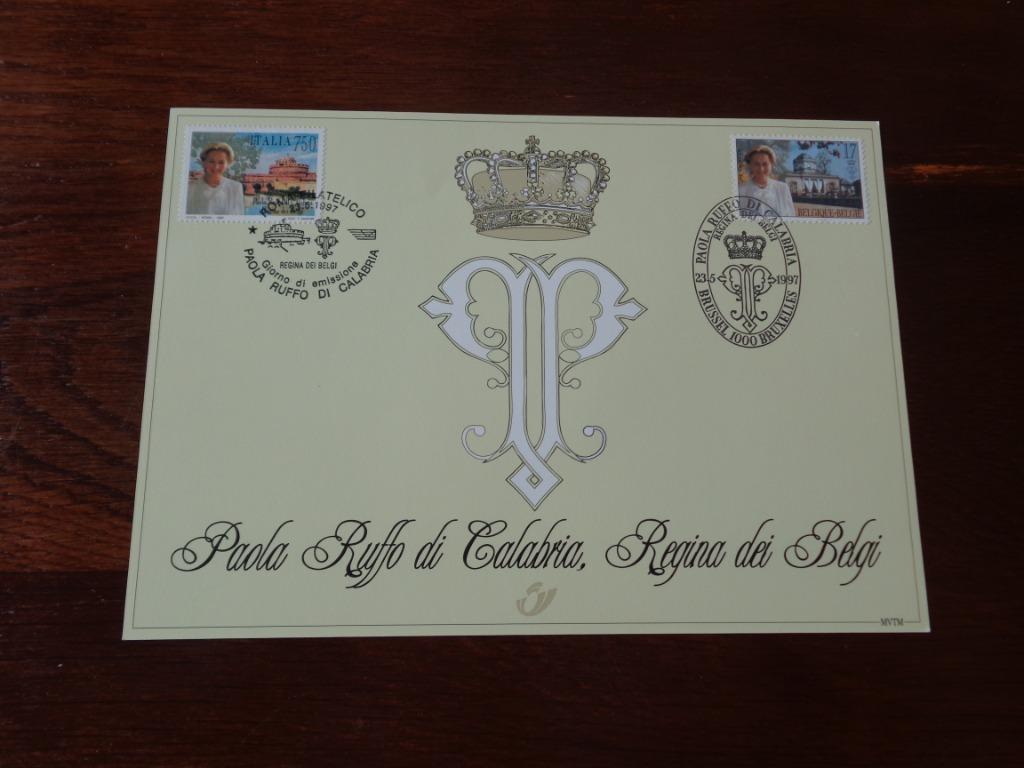 31 mai 25KimberleyBrussel - Carte commémorative de la reine Paola, lot 967Carte commémorative de la reine paola timbres de belgique et d'italieEnlèvement ou Envoi