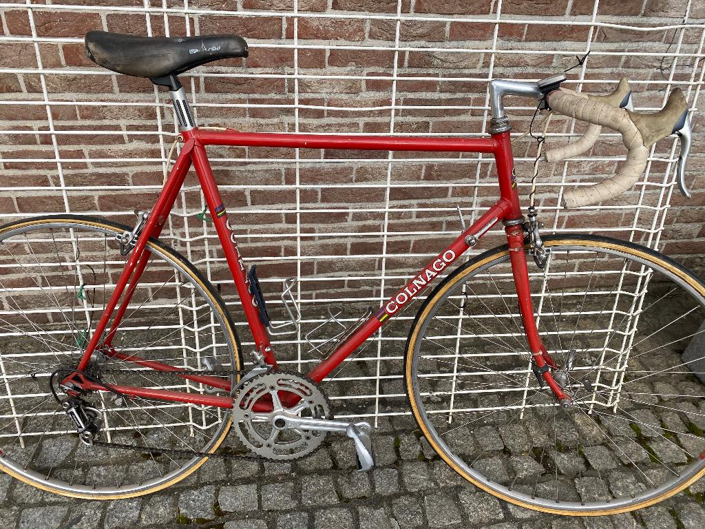 - Retro koersfietsRetro colnago koersfiets met campagnolo onderdelen. Nog in goede staat, tubes aan vervanging toe.