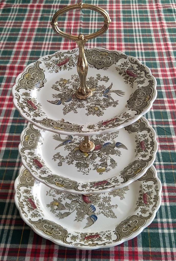 - Plancher Ridgway vintage de 3 étages avec motif WindsorDiamètres : 18 cm/21 cm/25 cm hauteur : 36 cm matériau : céramique et métal fabriqué en angleterre motif : motif « windsor » du ridgway-staffordshire résistant aux sous-glaçures et aux détergents étatEnlèvement ou Envoi
