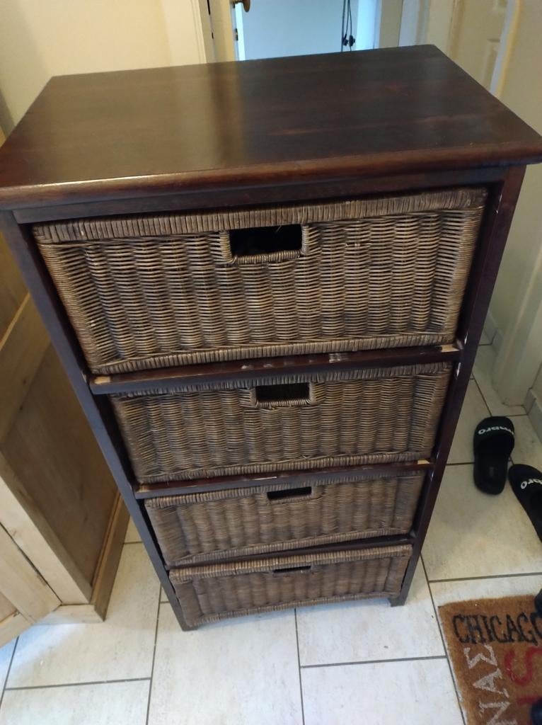 Avant-hierElkeRiemstkastje1 ou 2 tiroirs Enlèvement Utilisé TeckRiemstAvant-hier - Armoire de rangement à 4 tiroirs - osier/bois - comme neuveà vendre : meuble de rangement élégant au look naturel. Le meuble peut être placé verticalement ou horizontalement, en fonction de l'espace disponible. Idéal comme meuble de rangement dans le saloComme neuf Enlèvement