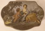 - ancienne boîte en tôle Ri-Ri Demaret - La Musette, BoucBelle boîte en tôle ancienne de ri-ri-demaret de forme inhabituelle. Dimensions : 20x30cm 7,5cm hEnlèvement ou Envoi