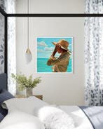 17 sept. 25MoniqueKnokke - Laura Anton - Journée à la PlageGiclée op houten schilderijdrager, 50 × 50 cm, editie 2/30, door laura anton, getiteld journée à la plage, hedendaags portret, certificaat van echtheid ondertekend door de kunstenaar, klaar om op te h