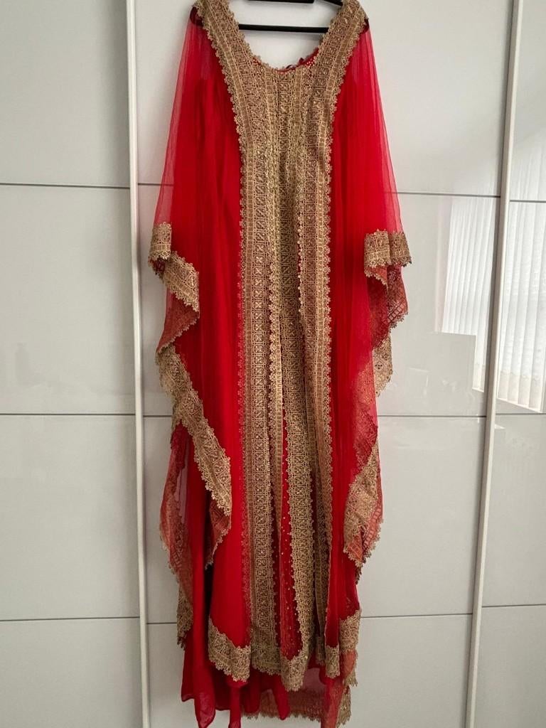 15 mars 23AnAalst - Lebsa rouge et doreKaftan/caftan /takchita rouge et doré bien travaillé avec fil doré, le bas de la lesbsa est aussi orné de pierre robe de soirée orientale, / marocaine original et unique chaque pierre est brillante esComme neuf Enlèvement